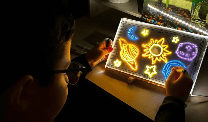 À chaque dessin lumineux, il améliore sa concentration, éveille son imagination et renforce sa confiance en lui. Le tout, loin des écrans et sans la moindre tache à nettoyer.